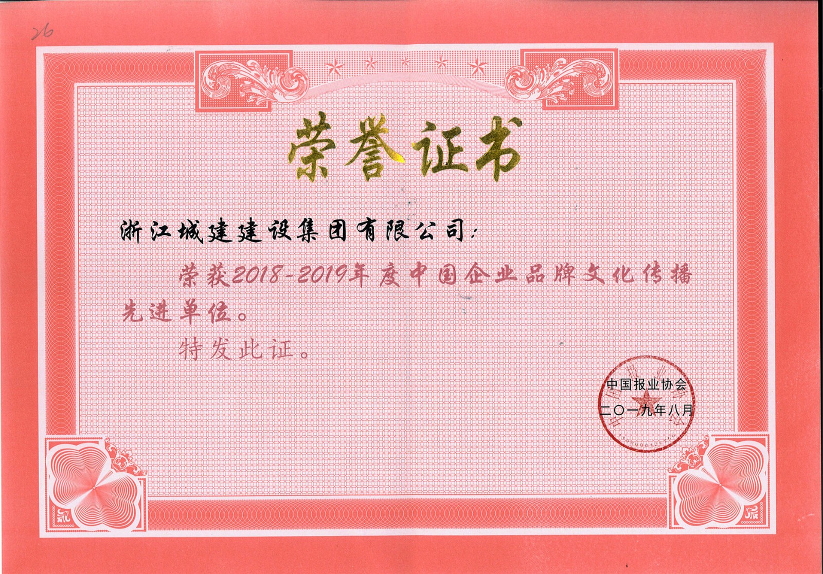 此次由中國報業(yè)協(xié)會在全國各省市推薦的企業(yè)品牌文化優(yōu)秀單位有500多家,經過全國企業(yè)文化專家組的嚴格評審,浙江城建建設集團有限公司從眾多企業(yè)中脫穎而出,以獨特的“建筑文化”在全國企業(yè)品牌文化中獨領風騷獲此殊榮。