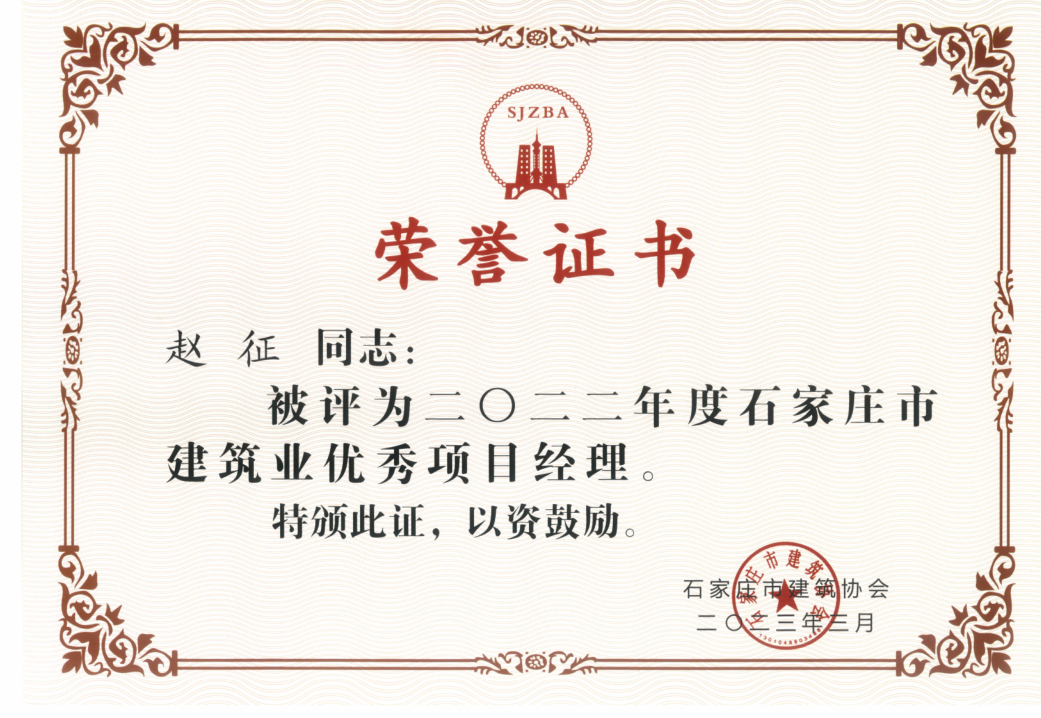 此次表彰大會(huì)上,浙江城建榮獲“2021—2022年度石家莊市建筑業(yè)AAA級信用企業(yè)”、“2022年度石家莊市建筑業(yè)先進(jìn)企業(yè)”兩項(xiàng)榮譽(yù);浙江城建三公司趙征榮獲“2022年度石家莊市建筑業(yè)優(yōu)秀項(xiàng)目經(jīng)理”榮譽(yù)稱號。
