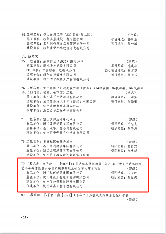 近日,由我司承建的臨平政工出(2022)14號(hào)功率器件驅(qū)動(dòng)器(年產(chǎn)80萬(wàn)件)及功率模組、功率半導(dǎo)體檢測(cè)設(shè)備智能制造基地及研發(fā)中心建設(shè)項(xiàng)目(簡(jiǎn)稱(chēng):飛仕得廠房建設(shè)項(xiàng)目),榮獲了杭州市建設(shè)工程結(jié)構(gòu)優(yōu)質(zhì)獎(jiǎng),這一榮譽(yù)的獲得,無(wú)疑是對(duì)我公司長(zhǎng)期以來(lái)堅(jiān)持的質(zhì)量理念和不懈努力的肯定。